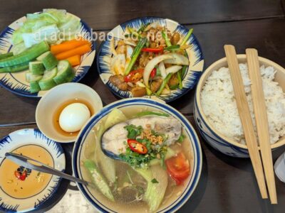 • Quán bán cơm theo phần, giá từ 50k-100k, bọn mình ăn thì thường gọi 1 món mặn, một rau, một canh, 2 đứa hết tầm 200k